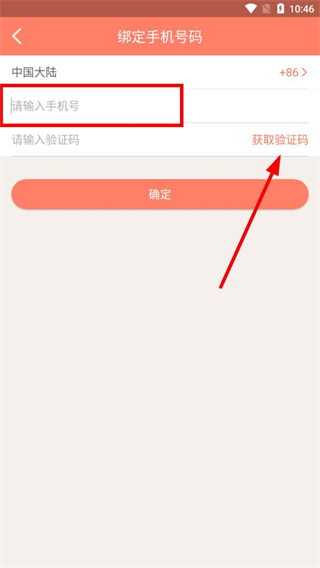 3、在绑定手机号码页面,输入新的手机号并点击获取验证码,输入验证码。