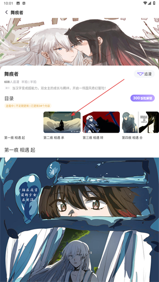 3、在该漫画的详情页面内,在目录中点击要观看的集数。