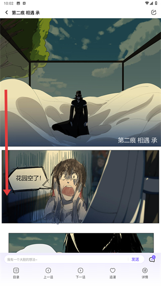 4、进入观看漫画的页面内,向下滑动即可开始阅读漫画内容。