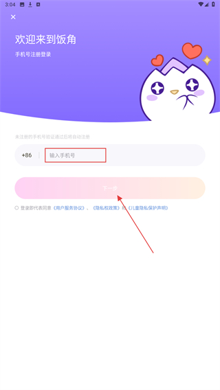 3、在登录界面的手机号输入框中,填写要绑定的手机号并点击下一步。