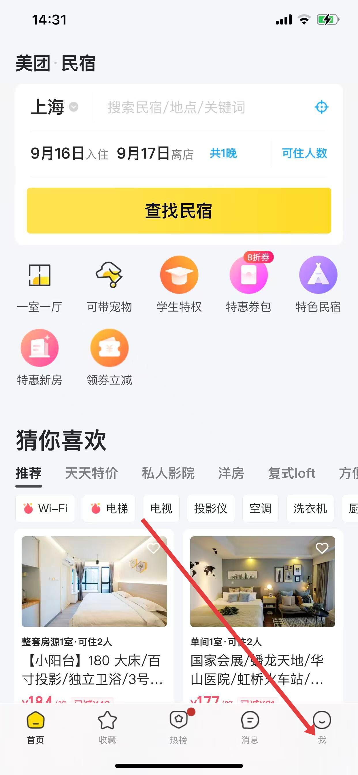1、打开美团民宿App,点击底部导航栏中的我选项。
