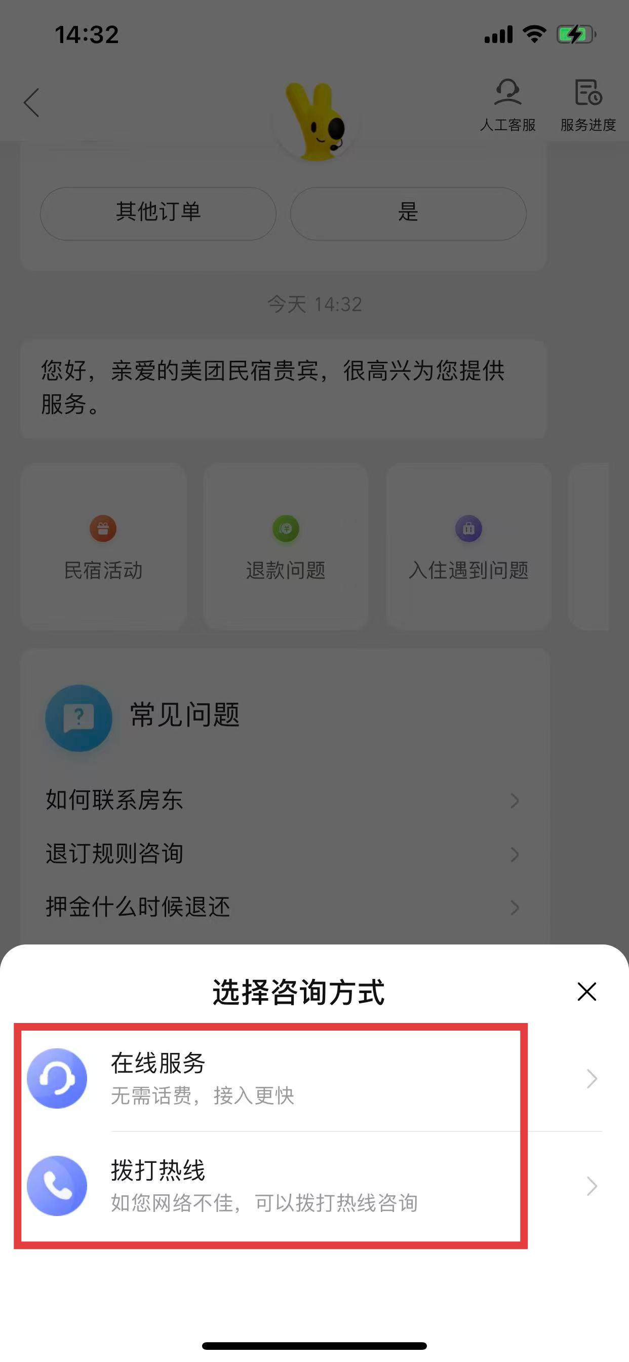 美团民宿怎么联系客服
