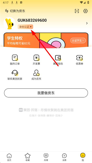 美团民宿app怎么认证学生身份信息