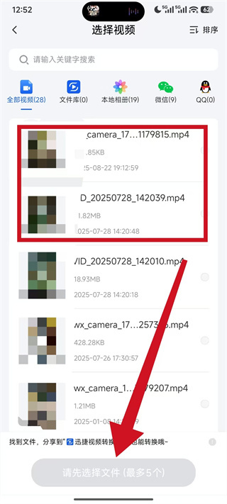 3、在视频选择页面,勾选需要转换的目标视频文件。