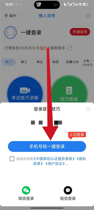 3、弹出登录选项窗口后,勾选相关协议,再点击手机号码一键登录。