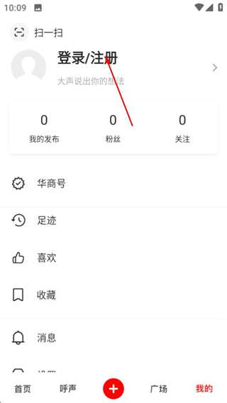 2、在我的页面点击登录注册区域,进入登录注册页面。
