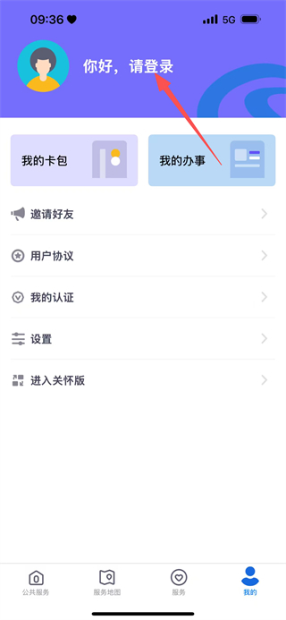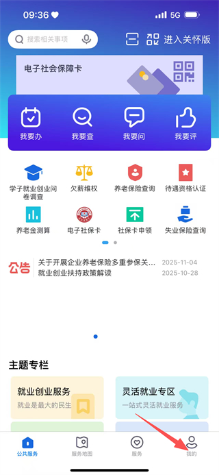 1、在公共服务页面,点击底部导航栏我的,进入个人中心页面。