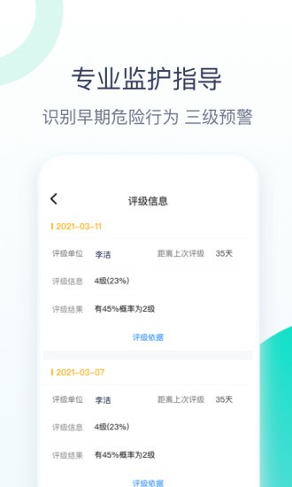 4、专业监护指导,识别早期危险行为,三级预警,让你及时预警。