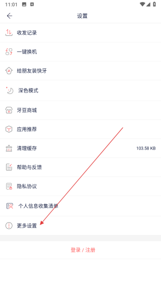 1、打开快牙APP,点击界面右上角的设置图标,进入设置页面。