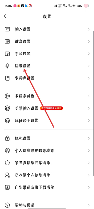 3、在设置页面中,找到语音设置选项并点击,进入语音设置的具体操作界面。