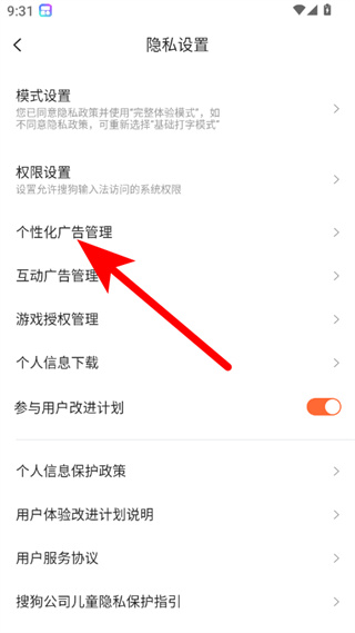 搜狗输入法怎么关闭个性化广告