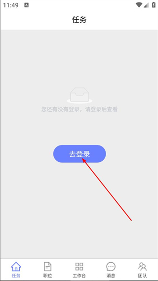 2、在任务页面,点击去登录按钮,进入劳务通的登录界面。