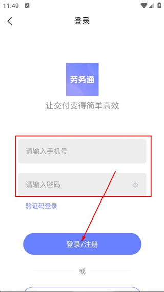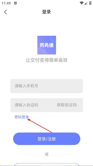 4、在密码登录界面,填写手机号和密码,点击登录/注册,完成账号登录。
