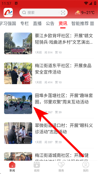 3、在资讯页面,点击目标资讯内容,进入资讯详情页。