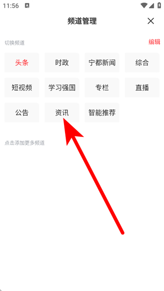 2、在频道管理页面,点击资讯频道,进入资讯内容页面。