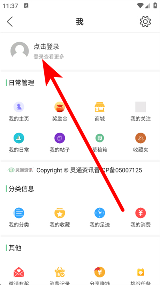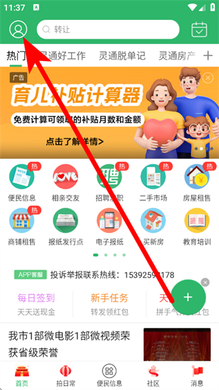 1、在灵通资讯运城,点击左上角头像,进入我的页面。