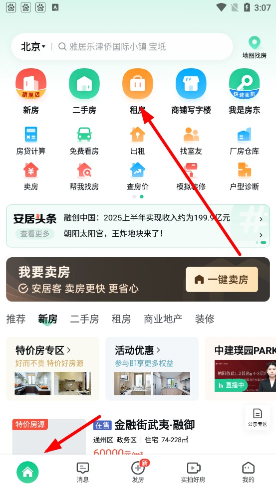 1、新房首页结构优化,找房路径更简捷