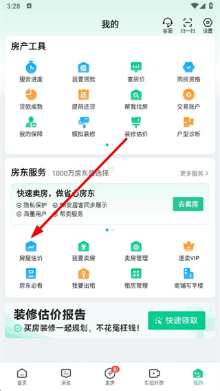 2、在个人页面的房东服务板块中,找到房屋估价选项并点击。
