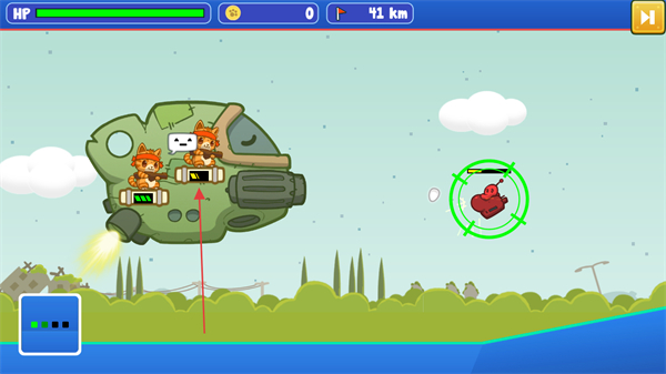 2、部署新猫咪到飞船空位,增强火力,击败右侧红色敌人,推进至41km。