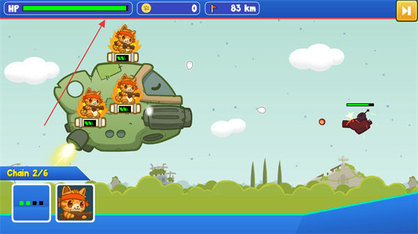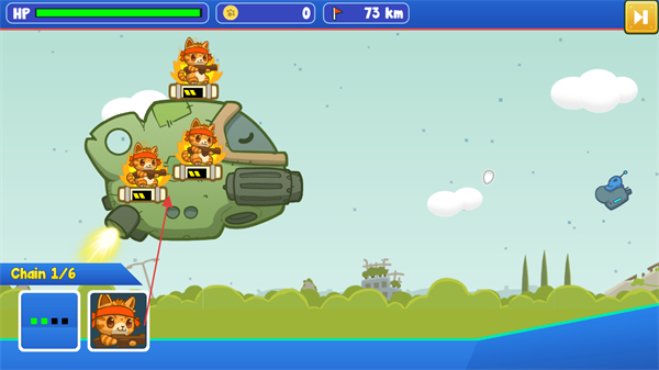 3、堆叠猫咪触发Chain1/6连击效果,提升输出,推进距离至75km。