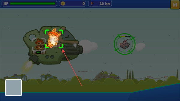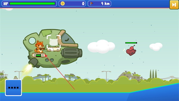 4、瞄准右侧道具,攻击获取资源,推进飞行距离至18km。