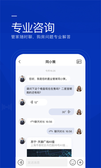 3、置业管家随时沟通,线上、电话专业解答。