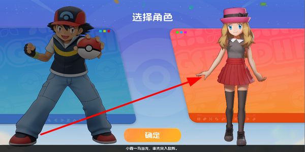 1、选择角色界面挑选喜欢的角色形象,点击确定按钮,完成角色选择进入游戏。