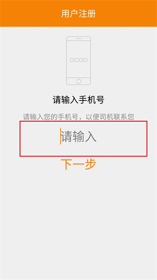 1、进入用户注册页面,找到请输入手机号对应的输入框,填写个人手机号码。