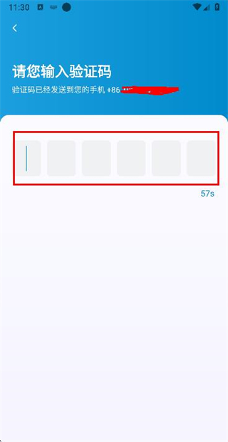 3、在输入短信验证码页面填写收到的验证码,完成账号的登录操作。