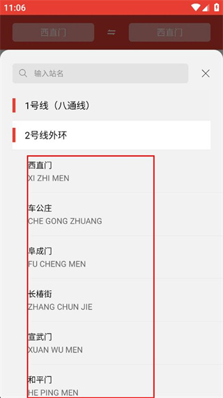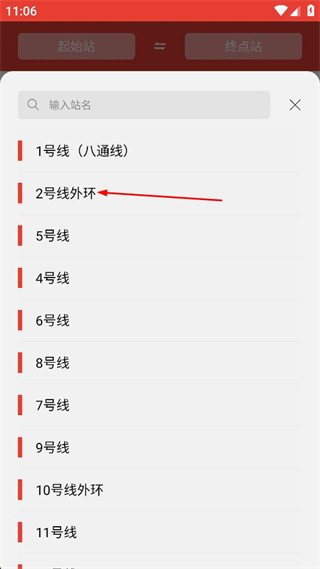 3、在站点选择界面中,找到2号线外环选项并点击,展开该线路对应的站点列表。