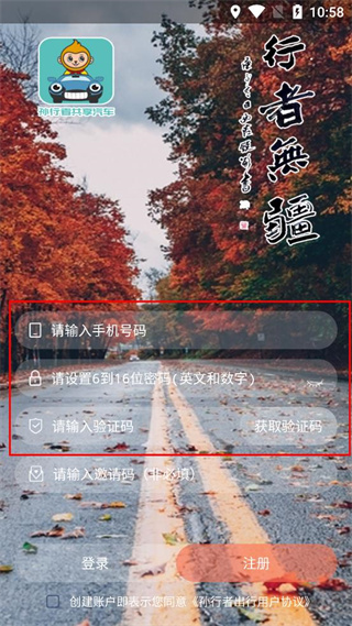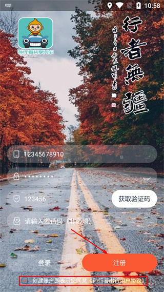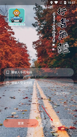 2、在账号页面中,找到并点击注册选项,跳转至孙行者共享汽车的注册界面。