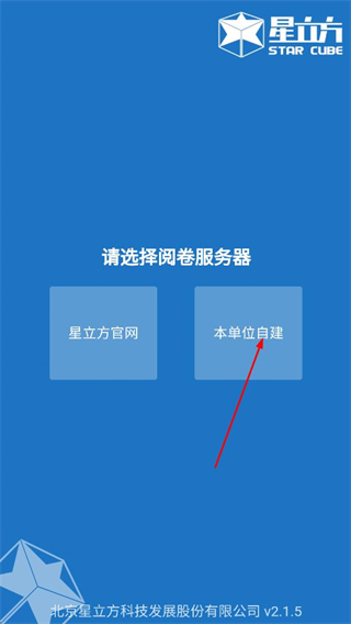 2、在请选择阅卷服务器页面,点击本单位自建选项,进入登录信息填写界面。