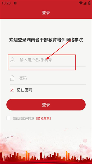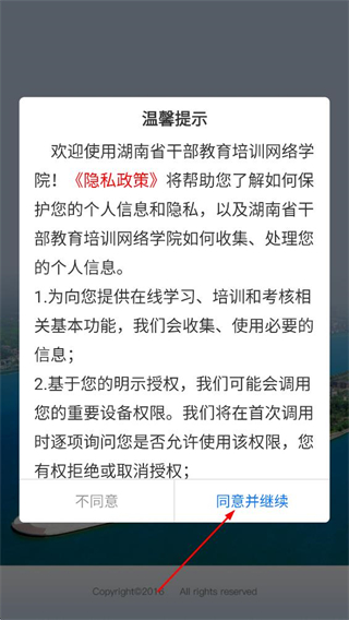 1、在湖南省干部教育培训网络学院的温馨提示,点击同意,进入登录页面。