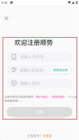 3、在注册页面依次填写信息后,点击注册完成操作。