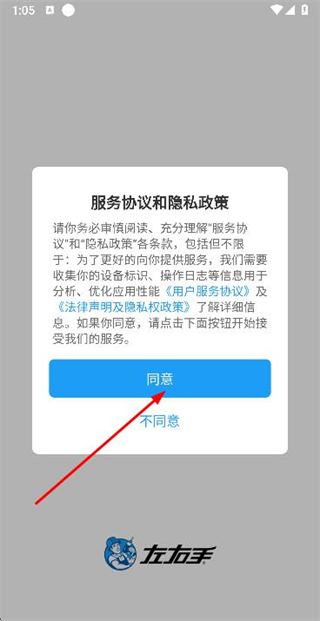 1、在使用协议隐私政策弹窗中点击同意按钮,进入登录页面。