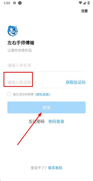 3、在验证码输入框中填写收到的验证码,点击登录完成账号的登录操作。