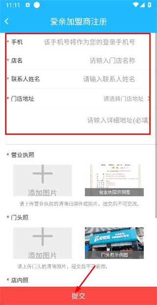 3、在加盟商注册页面填写对应信息后,点击提交完成注册。