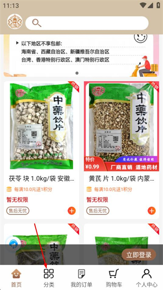 1、在祥芝药业首页点击分类选项,进入分类页面。