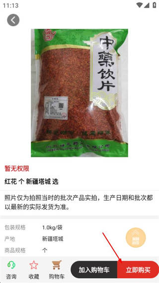 4、在商品详情页面点击立即购买按钮,完成购买操作。