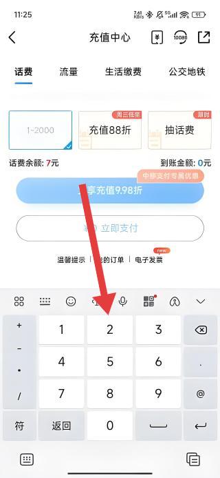 3、进入自定义金额输入界面后,通过屏幕键盘输入想要充值的话费金额,完成金额设定步骤。