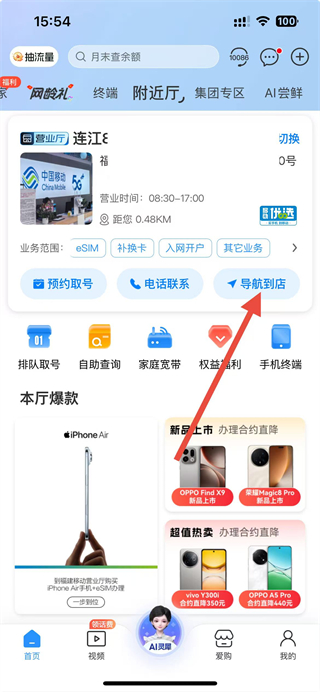 中国移动怎么导航附近营业厅