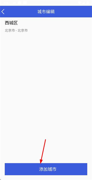 2、在城市编辑页面点击添加城市按钮,进入城市选择页面。