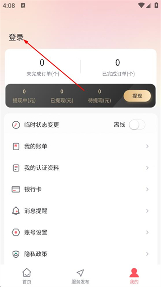 3、随后我们在个人中心页面,点击登录区域,进入账号登录的操作界面。