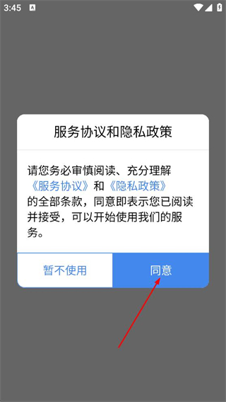 1、在服务协议和隐私政策弹窗中,点击同意,进入智安先锋的登录页面。
