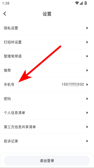 3、在设置界面里,点击手机号选项,进入修改手机号页面。