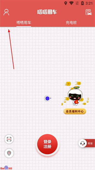 1、打开嗒嗒用车软件,点击页面左上角的图标,进入个人相关页面。