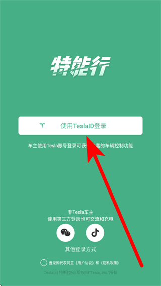 2、在我的页面,点击使用TeslaID登录,进入登录页面。