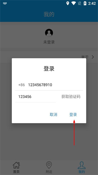 4、确认手机号和验证码信息无误后,点击登录窗口中的登录按钮完成操作。