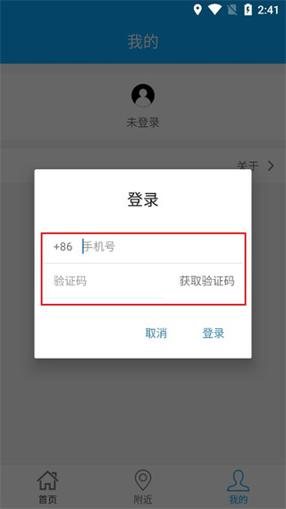 2、在我的页面中,点击未登录区域,弹出登录窗口。