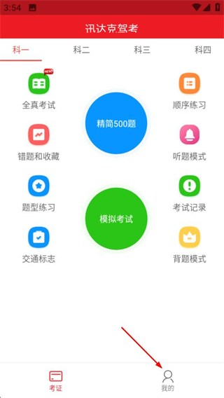 1、在迅达克驾考考证页面点击我的选项,进入个人中心页面。